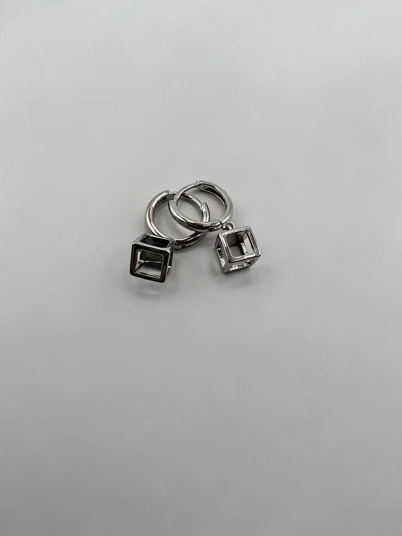 Featuring sleek square forms suspended in a balanced drop silhouette, these earrings bring architectural precision to everyday wear. The clean geometry creates a strong visual presence, while the open space and sharp lines keep the design light and modern.