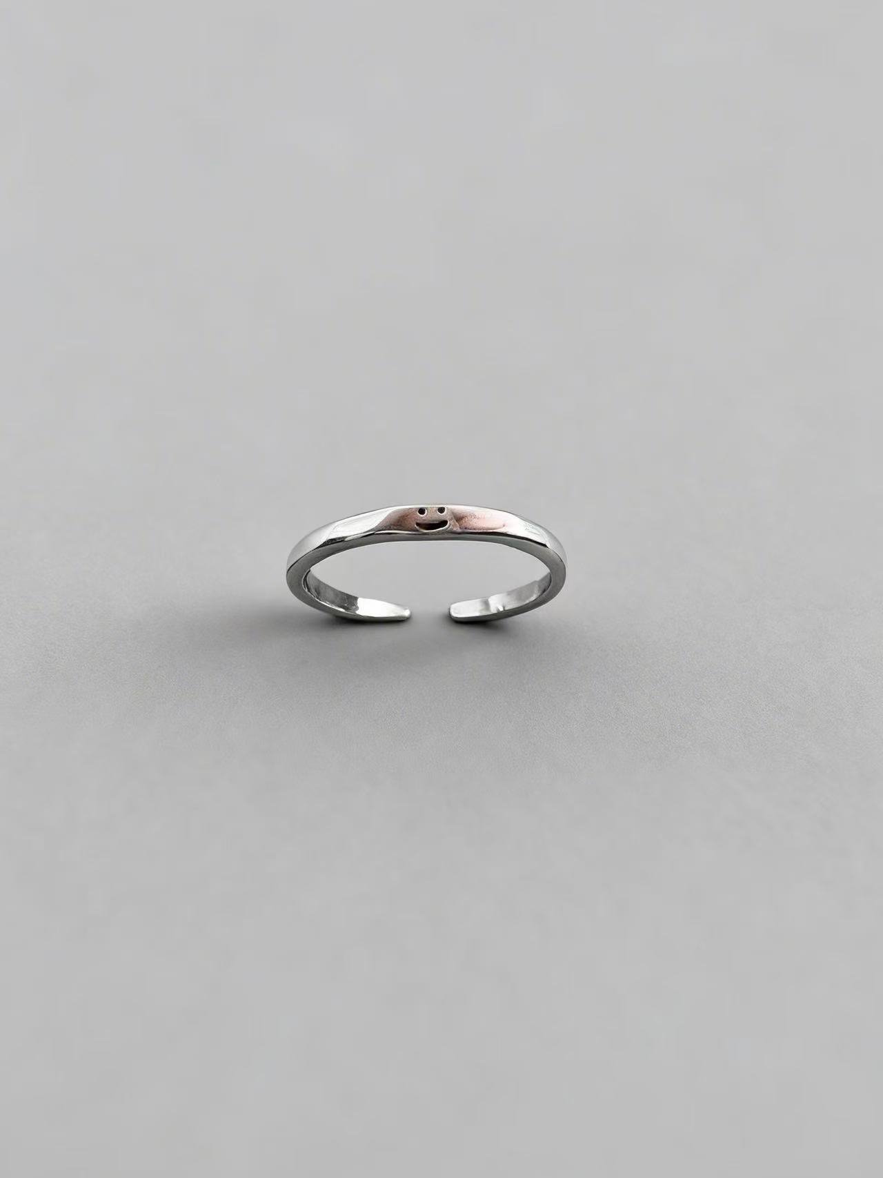 Crafted entirely from polished sterling silver, the smile is etched directly into the surface, becoming part of the ring itself rather than an added decoration. The adjustable open band ensures a comfortable, flexible fit, designed for effortless daily wear.