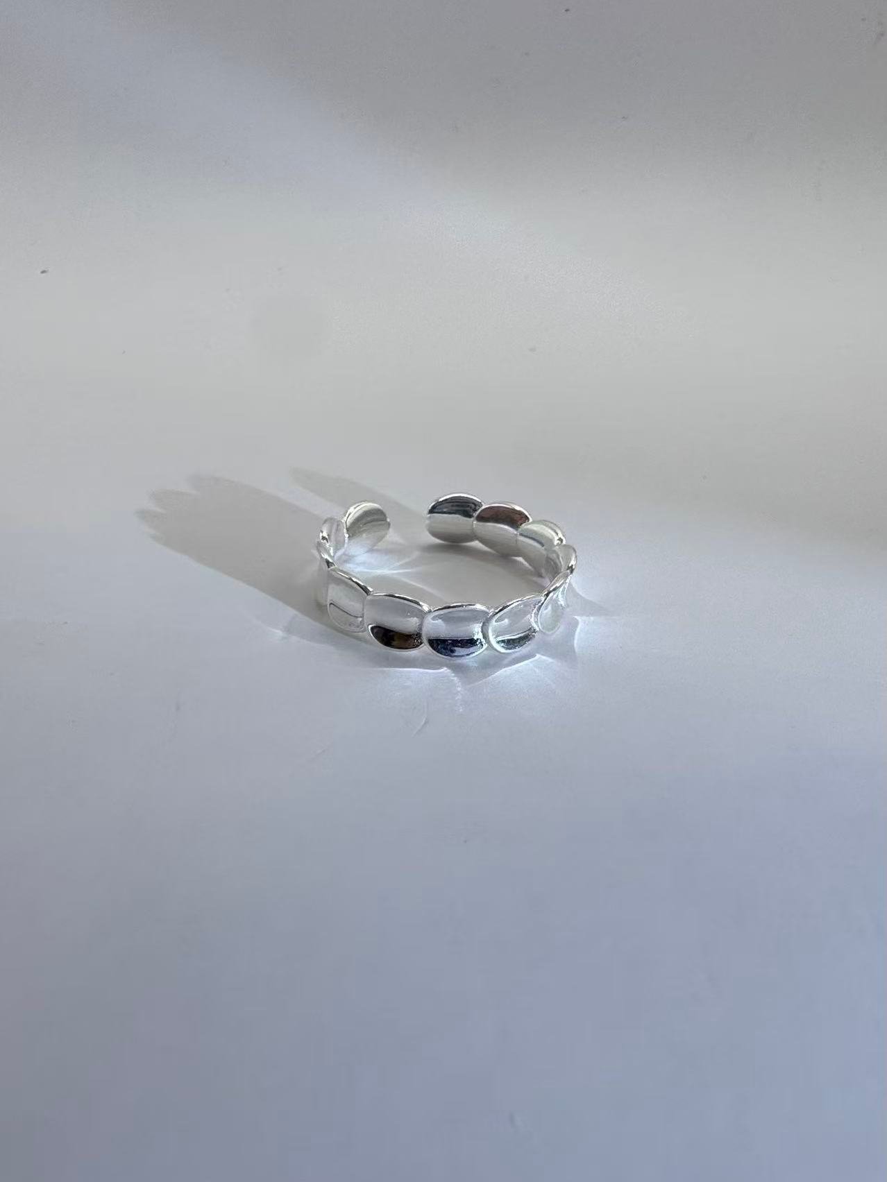 Crafted entirely from polished sterling silver, the ring has no stone and no setting, allowing its form and contours to take center stage. The adjustable open band ensures a comfortable fit for a variety of finger sizes, making it versatile for everyday wear or stacking with other rings.