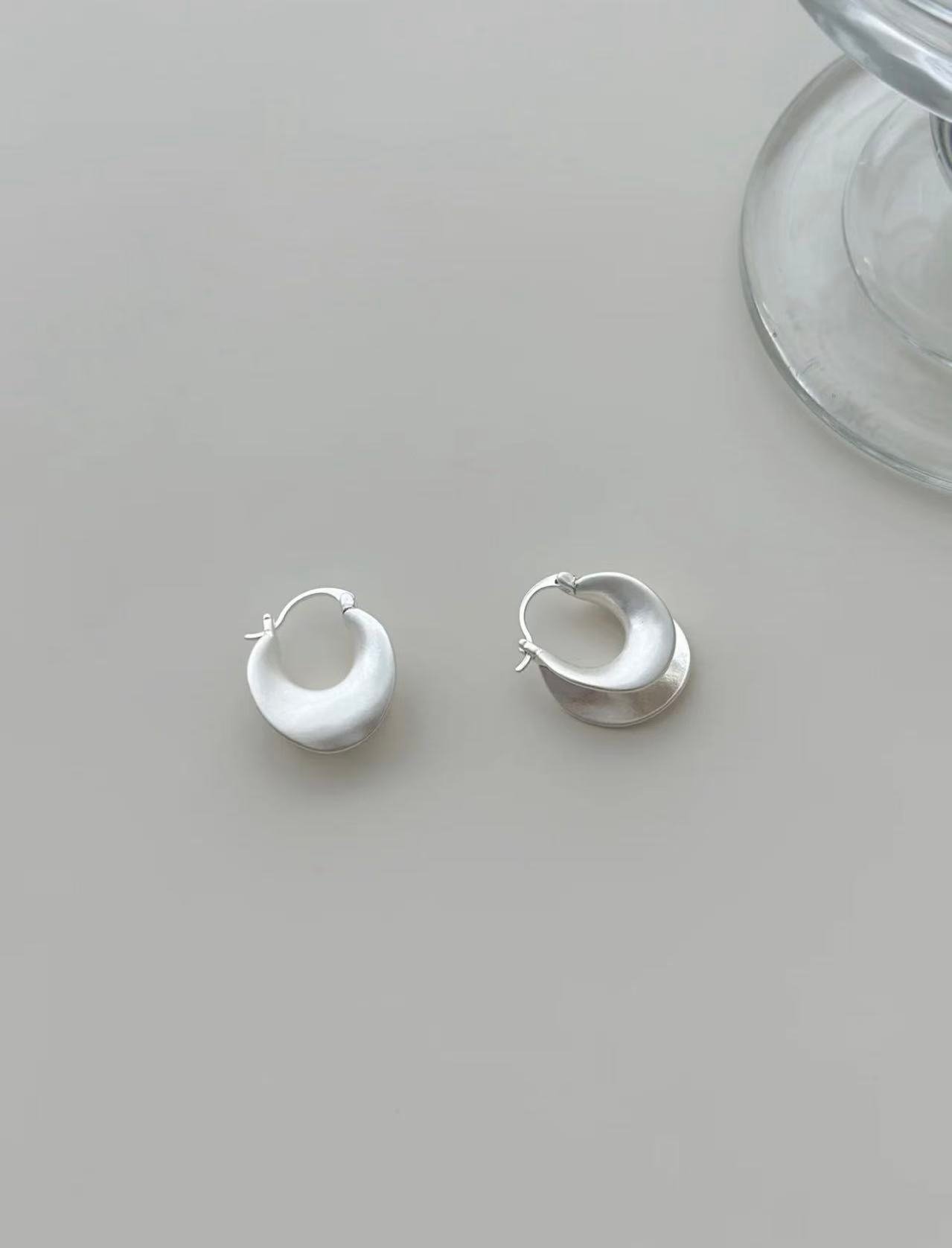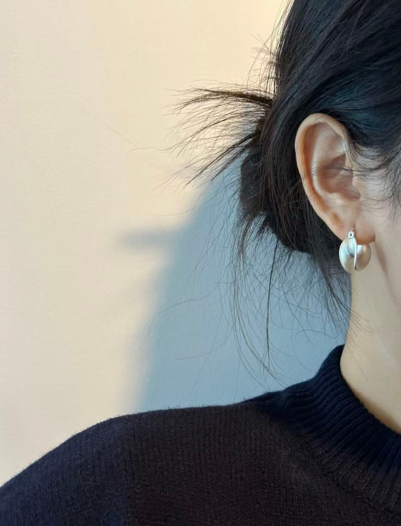 Thanks to their thickness and gentle curvature, the earrings naturally create soft shadows and dimensional highlights when worn. This subtle interplay of light and form adds depth and character without compromising the clean aesthetic.